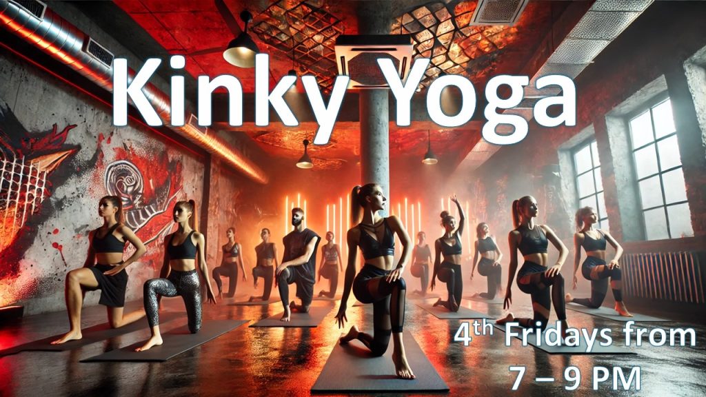 Come on out on Friday, we’ll get bent around, stretched out, tied in knots, indulge in a little bit of breath play, some sensory deprivation, maybe even some pet play and human furniture.
